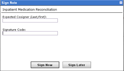 Figure 5: Upon completing the medication reconciliation dialog, the user is prompted to sign the note. The user