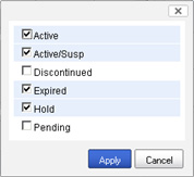 Figure 2: The medication list can be filtered by checking and unchecking items in the status list.