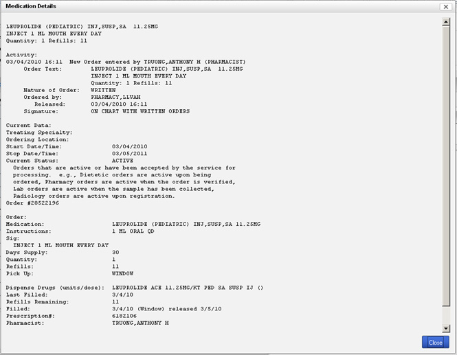 Figure 4: Details of the medication may be viewed.