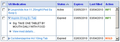 The patient's outpatient VA and non-VA med lists are automatically imported and displayed.